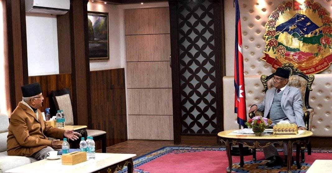 प्रधानमन्त्री प्रचण्ड र अध्यक्ष ओलीबीच भेटवार्ता
