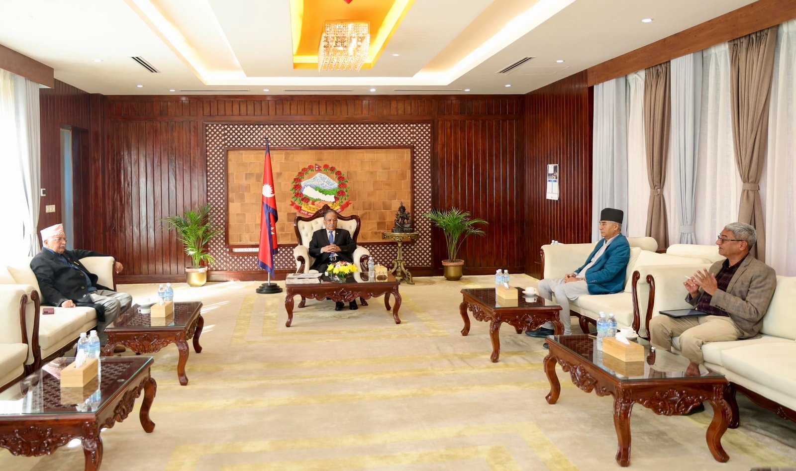 बालुवाटारमा प्रचण्ड, देउवा र ओलीबीच भेटवार्ता